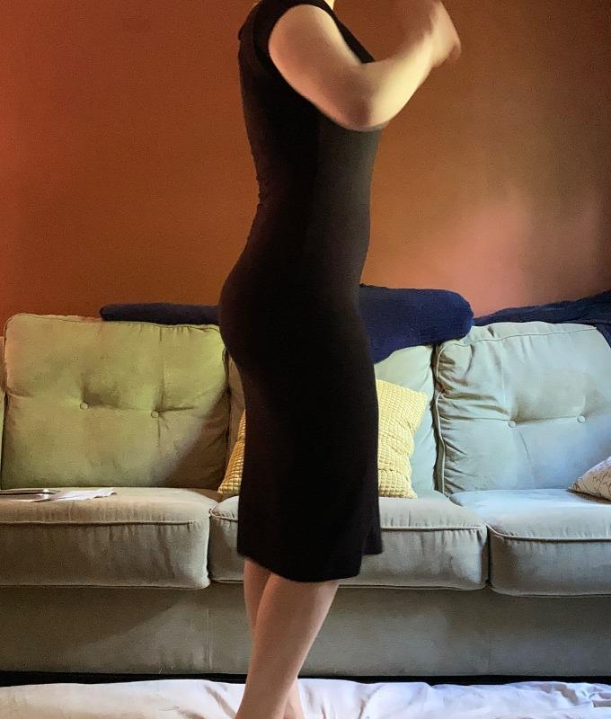 Not at all. The seamless design stays invisible under dresses, skirts, jeans, and even leggings.